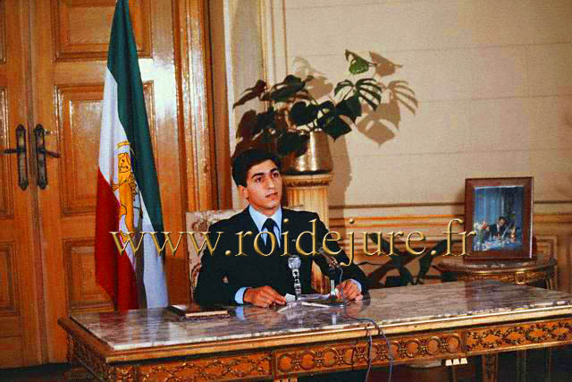 L'héritier du trône de Perse, fils aîné du défunt Shah-in-Shah d'Iran, est «Roi de jure » depuis sa prestation de serment solennelle, organisée le jour de ses 20 ans, le 31 octobre 1980 au Palais de Koubeh (Egypte) peu après le décès de son auguste père.